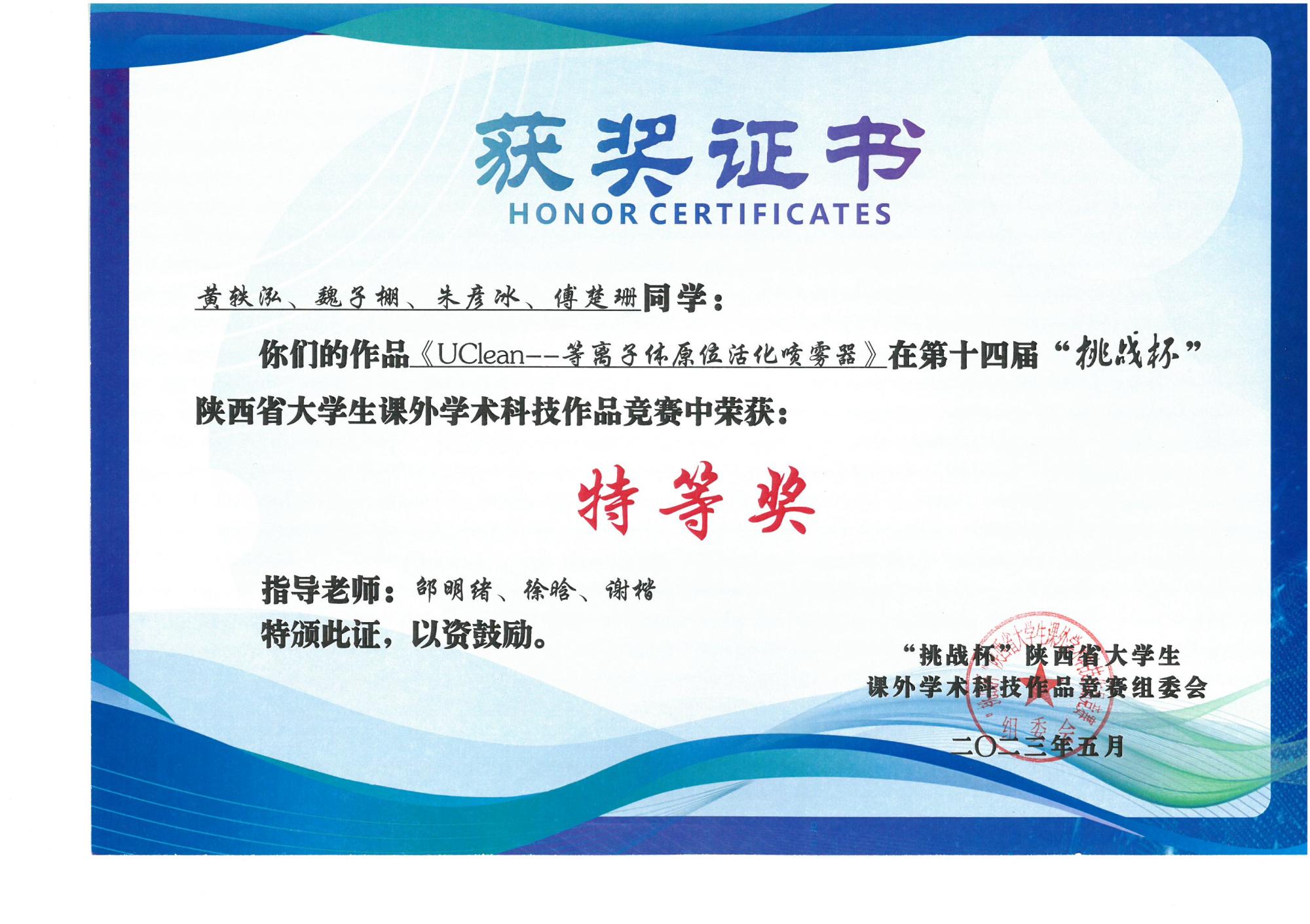 (通讯员 户昱炜)近日,第十四届“挑战杯”陕西省老员工课外学术科技作品竞赛在长安大学落下帷幕,由FUN88乐天使师生完成的《“无界”——全场景户外组网通讯设备》和《U-Clean ——等离子体原位活化喷雾器》两件作品在本届大赛中斩获特等奖。