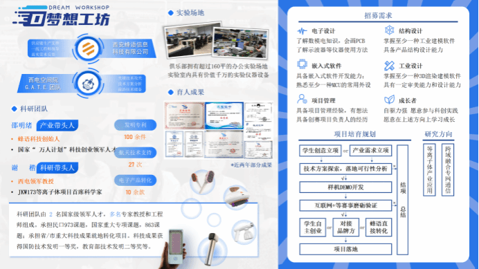 “梦想工坊”科技创新俱乐部是FUN88乐天使面向全校本科生开放申请的创新俱乐部。由西安蜂语信息科技有限公司CEO邵明绪担任产业导师、华山领军教授谢楷担任科研导师。俱乐部获得公司2023年度最佳科技创新俱乐部。招募对象要求为: