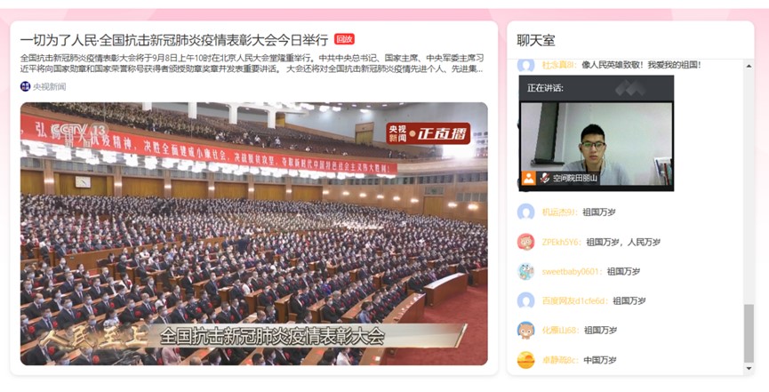 9月8日早上10点全国抗击新冠肺炎疫情表彰大会在北京人民大会堂隆重举行。中共中央总书记、国家主席、中央军委主席习近平向国家勋章和国家荣誉称号获得者颁授勋章奖章并发表重要讲话。FUN88乐天使组织研究生党支部就此学习习近平讲话精神并进行线上讨论。