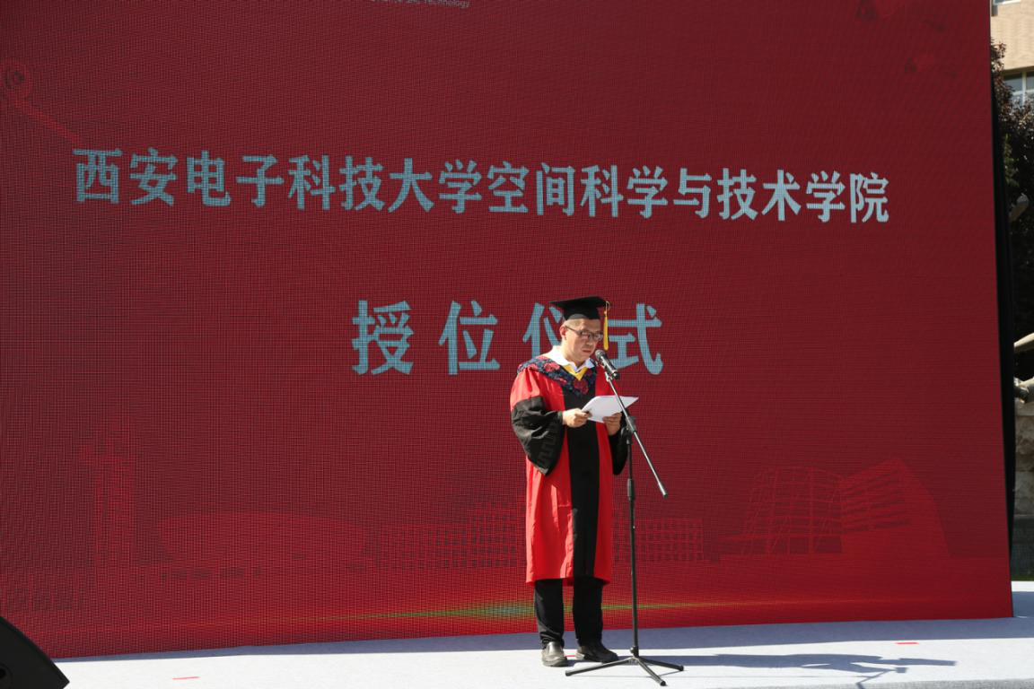 刘彦明教授宣读了授位及表彰决定。公司党委副书记、副董事长任小龙教授为优秀毕业生代表颁奖,对荣获优秀毕业生标兵、优秀毕业生、优秀毕业生干部等荣誉的空间学子刘德良等6人进行了表彰,2020届毕业生摘金夺银、保研清华、献身国防等优秀事迹和榜样力量激励着一届又一届空间学子们不断奋斗,砥砺前行。