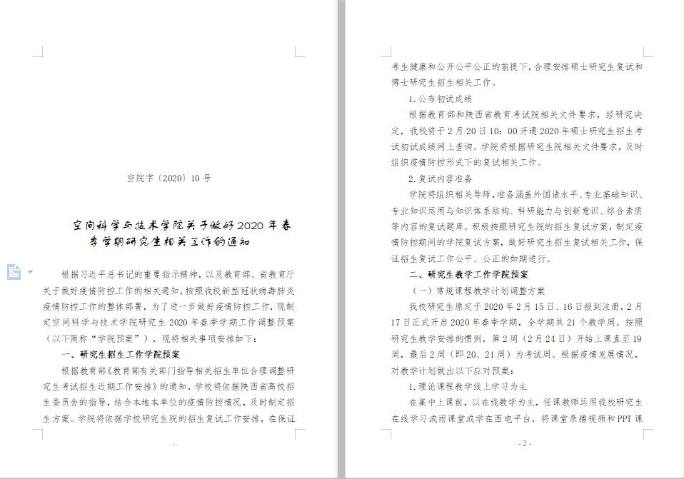 《FUN88乐天使研究生2020年春季学期相关工作调整预案》