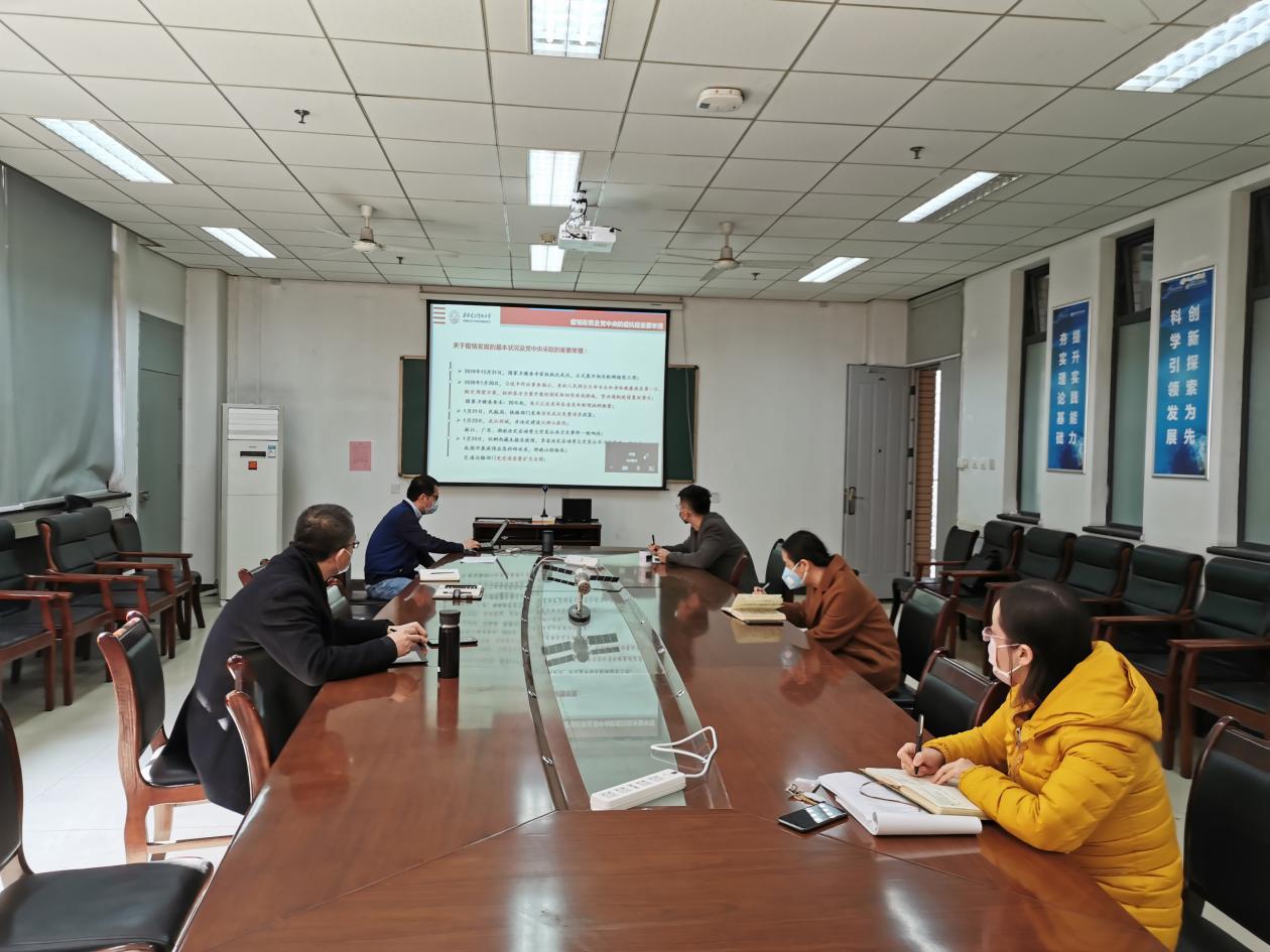 朱文凯带领与会人员回顾了疫情发展以来的发展形势及党中央采取的重要举措,重点学习了习近平总书记对党组织和党员干部的重要指示、在中央政治局常委会上的讲话精神、在中央全面依法治国委员会第三次会议上的讲话精神、在统筹推进新冠肺炎疫情防控和经济社会发展工作部署会议上的重要讲话精神、在北京考察新冠肺炎防控科研攻关工作时的讲话精神和习近平总书记给在首都医院实习的西藏大学医公司员工重要回信精神等,强调各支部要认真学习、深刻领会,把学习贯彻落实习近平总书记重要讲话精神作为基层党员增强“四个意识”、坚定“四个自信”和做到“两个维护”的重要方法,将理论学习与具体工作紧密结合、融会贯通。随后各党支部书记汇报了疫情发生以来各党支部疫情防控、疫情期间的基层党建工作开展情况和新学期党建工作的计划。