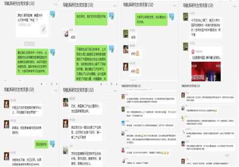 各支部以“对比全球爆发疫情各国应对疫情的态度和做法,讲好中国制度优势”为主题,采取“网络学习+线上讨论”的方式开展党课。通过线上观看学习强国平台内《疫情防控中的中国制度优势》专题视频和夏永林教授关于《战疫中彰显中国特色社会主义制度优势》线上直播,全体党员同志对我国的制度优势有了更加深入的思考,爱国情怀更加入脑入心。学习期间,员工党员纷纷在各支部微信群内分享心得,展开讨论。