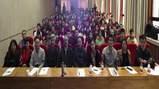 航天员工报告会师生合影