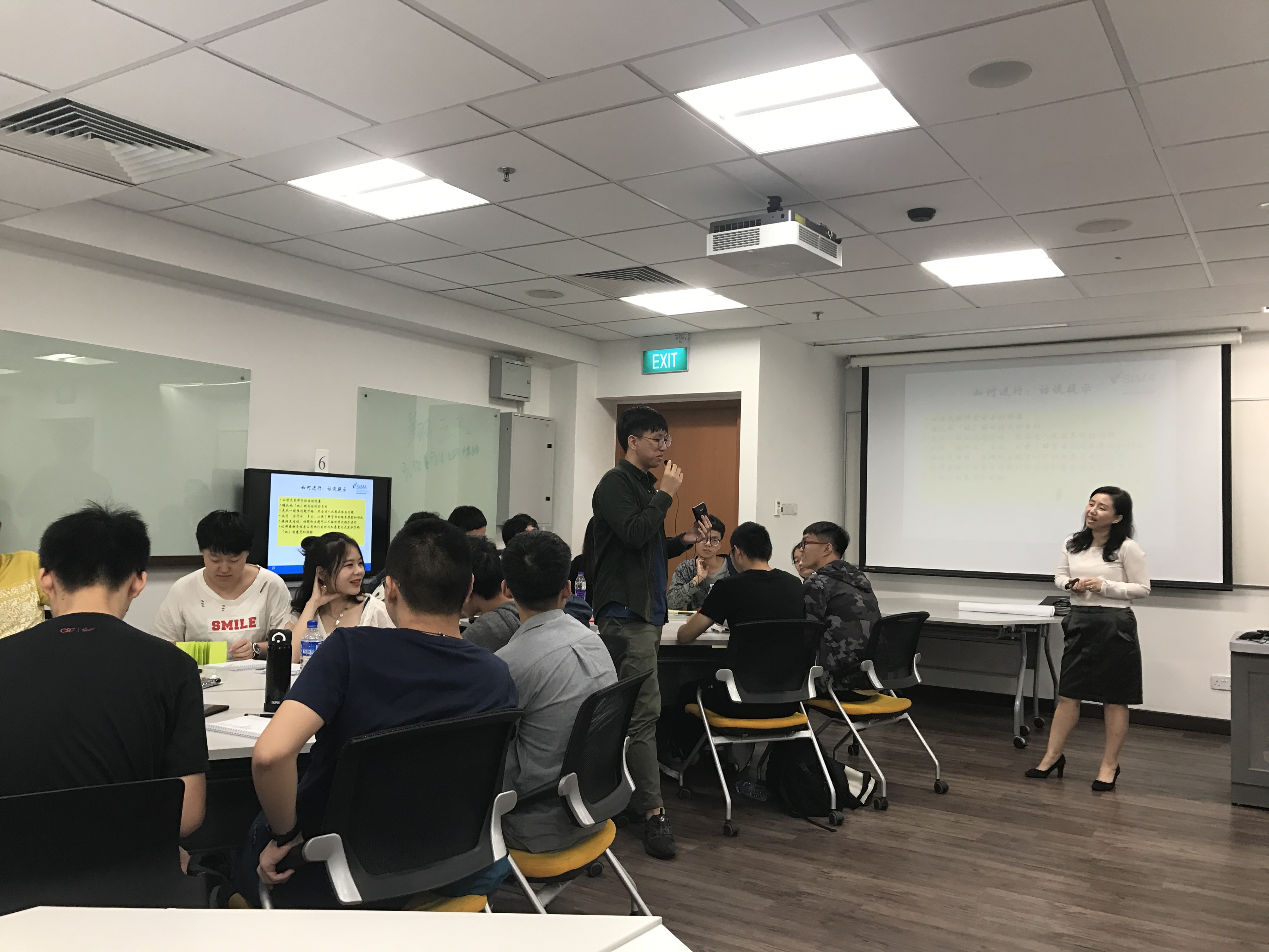 此次赴新期间,各类学习交流活动均以小组为单位,小组成员间通力合作,互相配合,圆满完成了访学任务。访学的最后环节结业典礼上,六个小组完成的访学报告也是各具特点,精彩纷呈。访学期间,特地安排了NUS 6名研究生作为同学们的校园向导,8名博士和同学们就相关研究进行深入讨论交流。访学活动期间同学们培养了深厚的友谊。