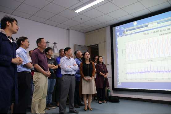 课题5和课题6负责人围绕科学问题 “动态等离子体鞘套下可靠通信方法”汇报了动态等离子体空时频信道模型、信道典型特征及物理机理、动态等离子体鞘套地面模拟平台及自适应通信理论方法等重点成果,项目总体负责人介绍了成果实验演示方案,随后专家和参会人员在实验室现场观摩了成果验证的完整实验。专家们饶有兴趣在现场展开了讨论和提问,一致认为理论研究成果突出、实验方法先进、结果清晰,实验圆满成功。对于项目取得的重大突破和成果给予了高度评价。