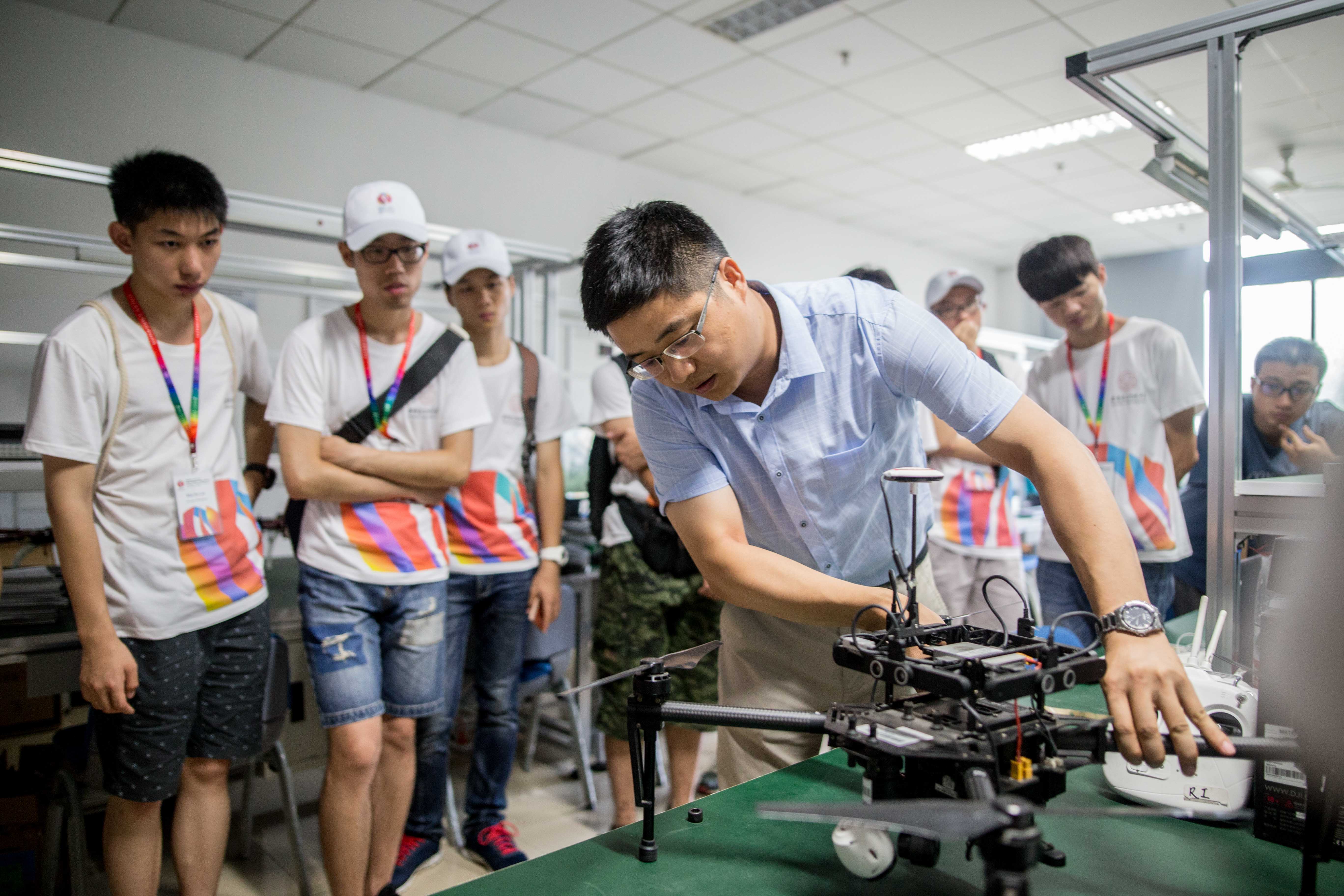 受邀前来的香港大学员工与国际暑期公司志愿者近20人首先前往空间物理环境实验室和空间电磁实验室,由谢楷教授为同学们进行了生动详细的讲解,同学们被谢老师所描绘的外太空世界深深吸引,激起了同学们的好奇心和求索欲。随后同学们来到导航控制实验室,张华副教授为大家讲解了北斗导航的发展,以及员工创新实践的详细情况,展示了员工参与科研实践竞赛的成果。接着同学们来到大疆无人机创新实验室,孙伟教授为大家讲解了无人机平台开发的各种最新成果和图像处理的相关知识,同学们纷纷表示大开眼界,受益匪浅。