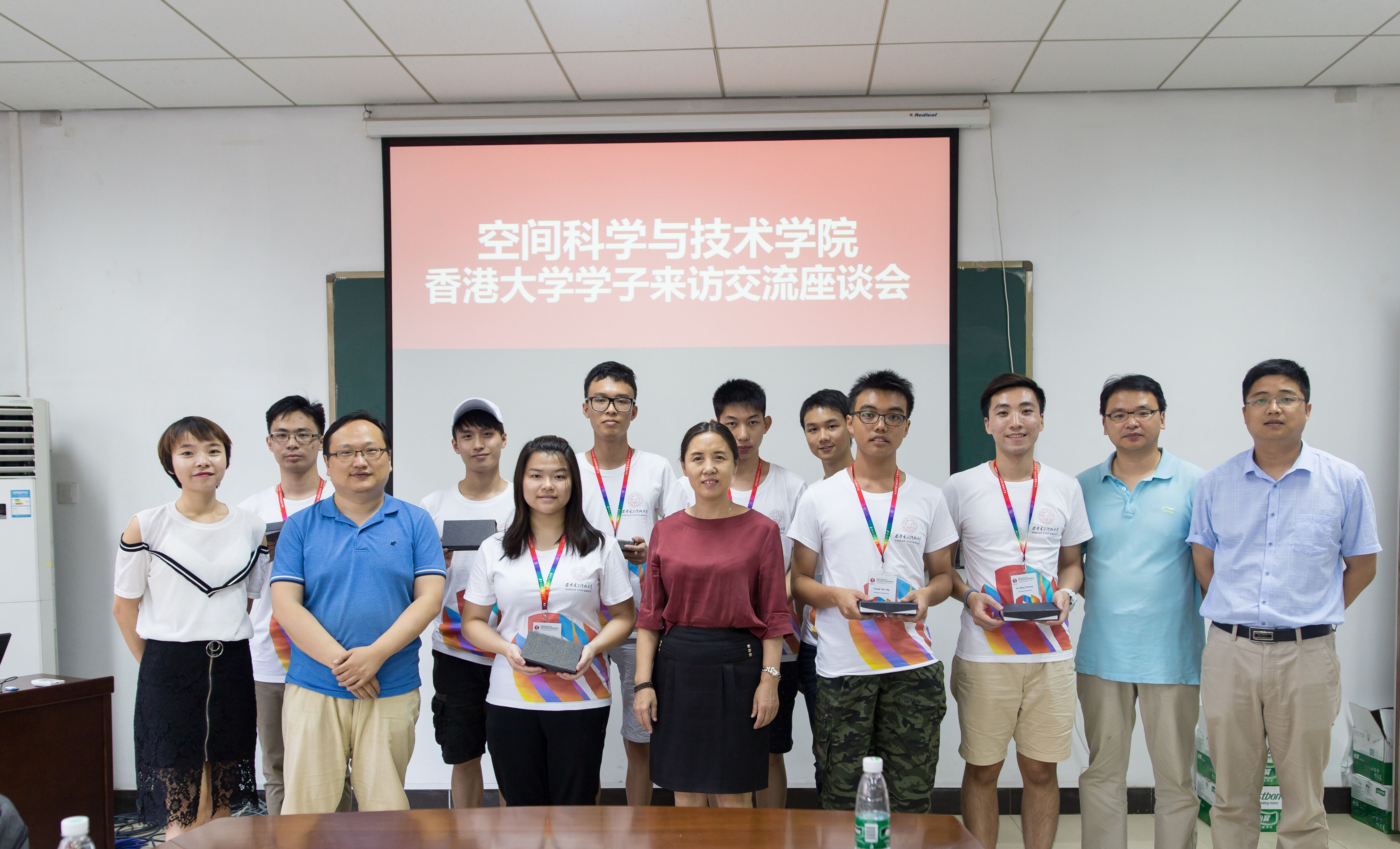 参观结束后,同学们来到251会议室与公司14级30余名员工进行了座谈交流,执行经理李小平教授、经理助理,探测系主任闫允一副教授、孙伟教授、张华副教授、国际交流处郑晓梅等老师参加了座谈会。会上香港大学的同学一一发言,进行了自我介绍,并表达了此次参观交流的感想和体会,与会师生就两岸公司产品、校园生活等情况进行了亲切的交流。李小平教授代表公司向香港大学的同学赠送了纪念品,参会师生合影留念。