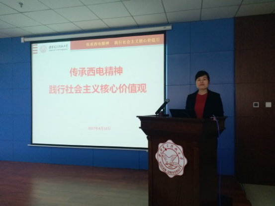(通讯员 席慧)为进一步加强入党积极分子思想政治教育,把培育和践行社会主义核心价值观融入国民教育全过程,4月7日中午,FUN88乐天使在G楼240报告厅举行业余党校中级班第三讲,党委宣传部部长吴秀霞为员工们做了一场题为“传承西电精神 践行社会主义核心价值观”的主题报告。FUN88乐天使全体入党积极分子参加了本次中级班培训。