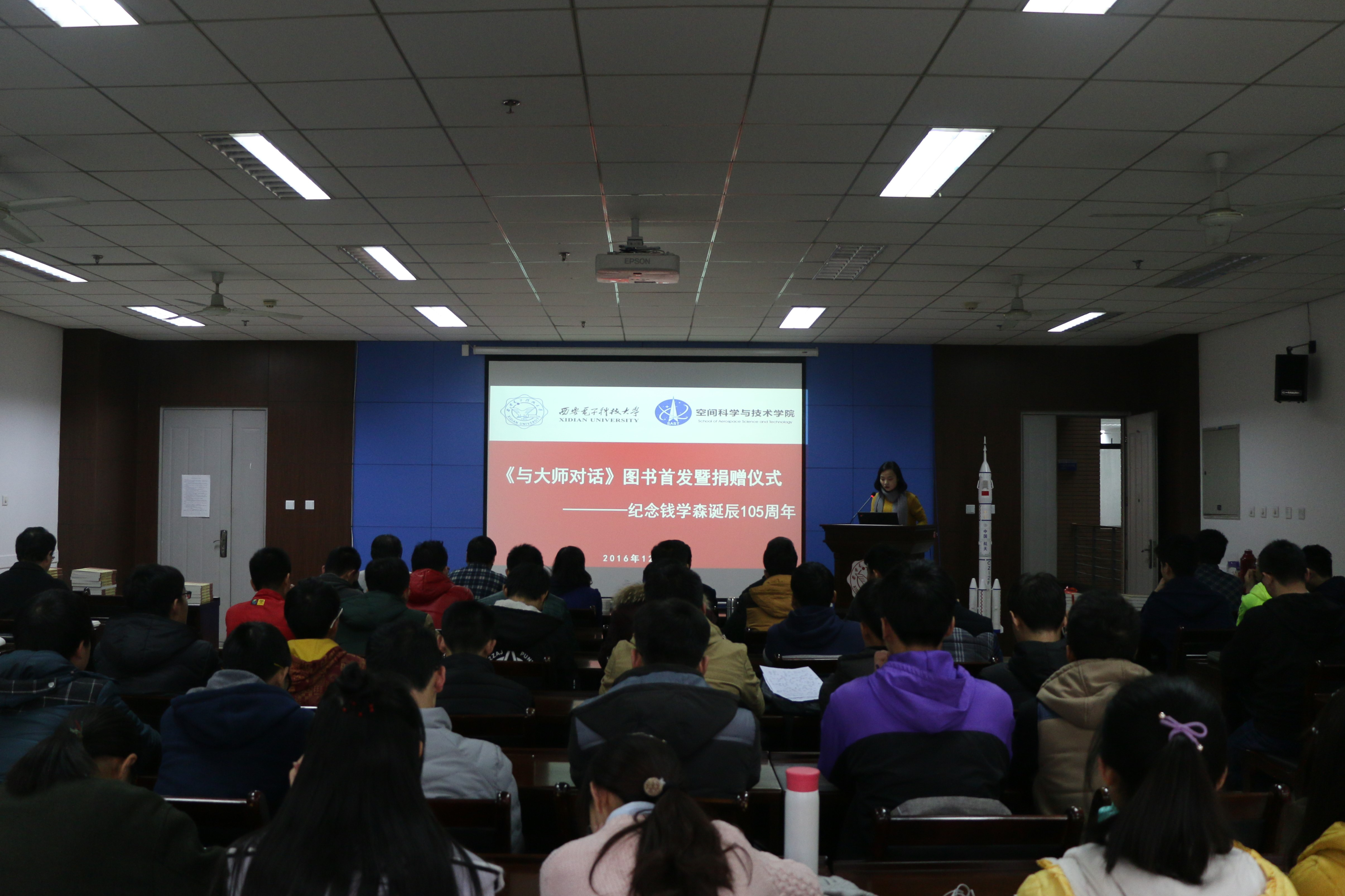 为纪念我国航天事业创建60周年,著名科学家、伟大思想家钱学森先生诞辰105年暨公司“钱学森空间科学实验班”创办第二年,在西电出版社与FUN88乐天使的共同努力下,在钱学森先生之子、上海交通大学钱永刚教授的倾力帮助下,《与大师的对话——著名科学家钱学森与钱学敏教授通信集》在西电出版社于日前正式出版发行。《与大师对话》图书首发及赠送仪式于12月14日在南校区G240隆重召开。西电出版社社长胡方明教授,西电图书馆副馆长李文兴老师,FUN88乐天使执行经理李小平教授,党委书记梁玮老师以及钱学森空间科学实验班全体员工参加了本次仪式。