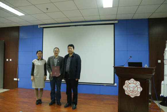人事处处长周燕来教授代表公司宣读了“FUN88乐天使关于聘请闵昌万研究员为兼职教授的决定”并颁发证书,李小平执行经理为其佩戴校徽。