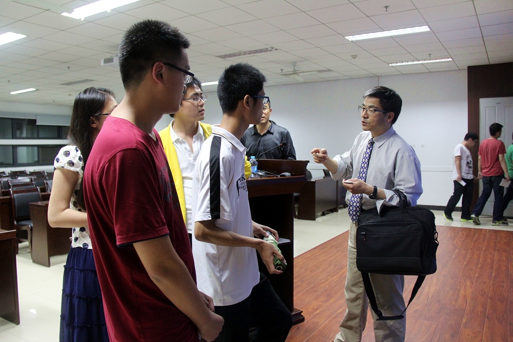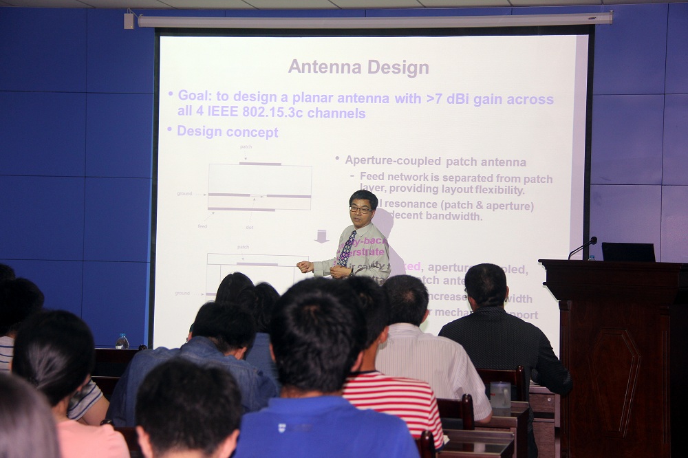 报告会上,刘兑现针对高速无线Gbps速率的数据传输日益增长的需求以及将天线嵌入封装或集成到芯片上的装配难题,详细并生动的介绍了在MLO、LTCC两种封装上如何有效地设计实现宽带60GHz天线,并给出了两种封装经过仿真设计,原理样机研制以及性能测试的研发过程。报告图文并茂的展示了这两种封装被用于60GHz的16单元相控阵天线的研发成果。在场的每一位师生无不为刘教授严谨的治学态度,渊博的知识,风雅的谈吐而感叹,报告会现场时而鸦雀无声,时而掌声雷动。报告会上,刘兑现博士仔细为师生们答疑解惑,并对同学们发表论文遇到的问题展开了热烈的交流。会后,在场的师生纷纷表示聆听这样一场能够接触到业界前沿科技的学术报告使自己受益匪浅。