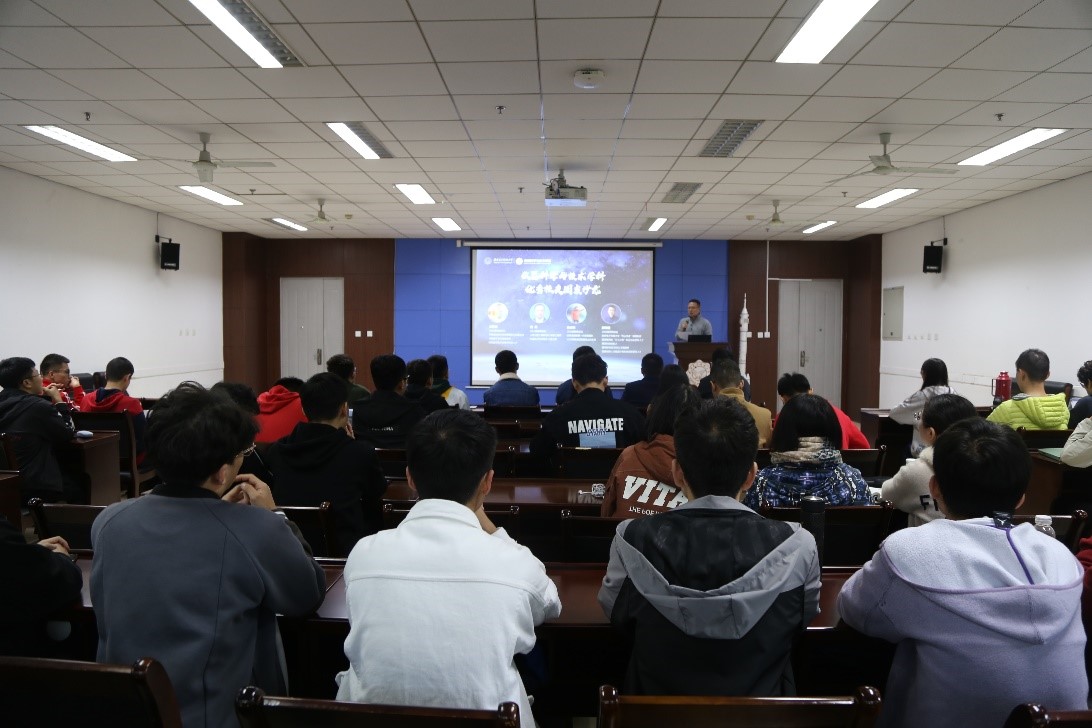 赵宝升研究员则以《近代物理学的发展对四次工业革命的影响》为主题,给师生们上了一节难以忘怀的航天金课,系统的回顾和介绍了人类演化历史以及四次科技革命对人类社会的影响,报告生动有趣,师生们收益颇丰。
