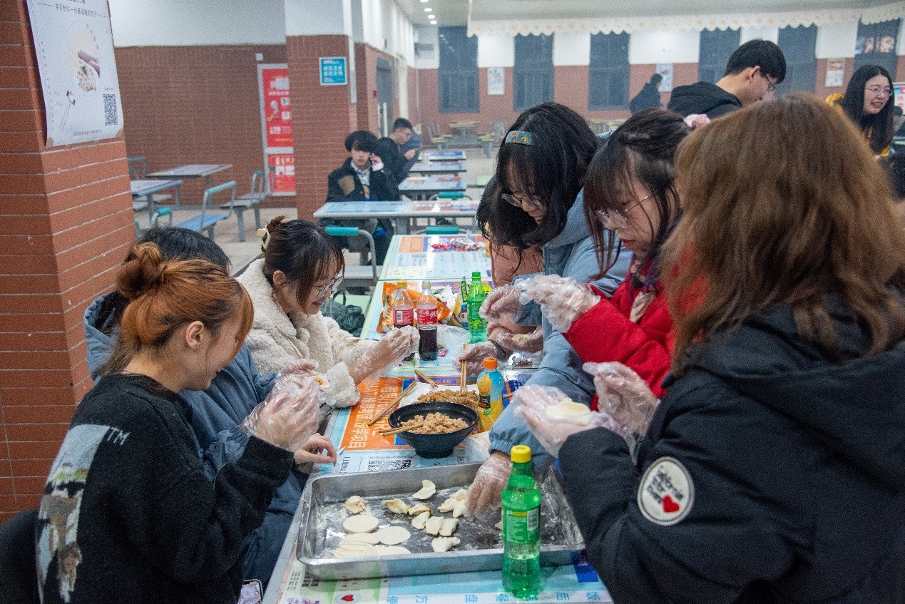 经过一番准备,师生围桌而坐开始忙碌,共同包起象征着“团圆福禄”的饺子,在动手实践中感受节日的氛围。“一个学期下来适应老员工活了吗”、“同学们对于自己专业的课程设置是否满意”、“未来有什么期望和计划”、“平常喜欢什么样的运动”,包饺子之余,公司领导、老师与员工充分交流互动,聆听建议,调研需求,了解员工所思所想,并向员工传达公司的关心和问候。
