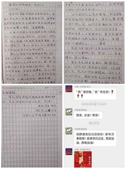 “我们无须惊慌,无需后顾之忧,他们会用最好的方式采取措施,保护孩子、保护祖国的未来”“希望各位孩子在西电领导和老师的领导之下,团结一心、并肩携手、安心学业。”作为经历过武汉疫情的家长,FUN88乐天使钱学森班刘勇的母亲满怀特殊的心情写下一封亲笔家书,以诚挚的文字,书写对公司、公司的信任与感谢。信中真诚质朴的话语,温暖了诸多学子,增添了更多信心。