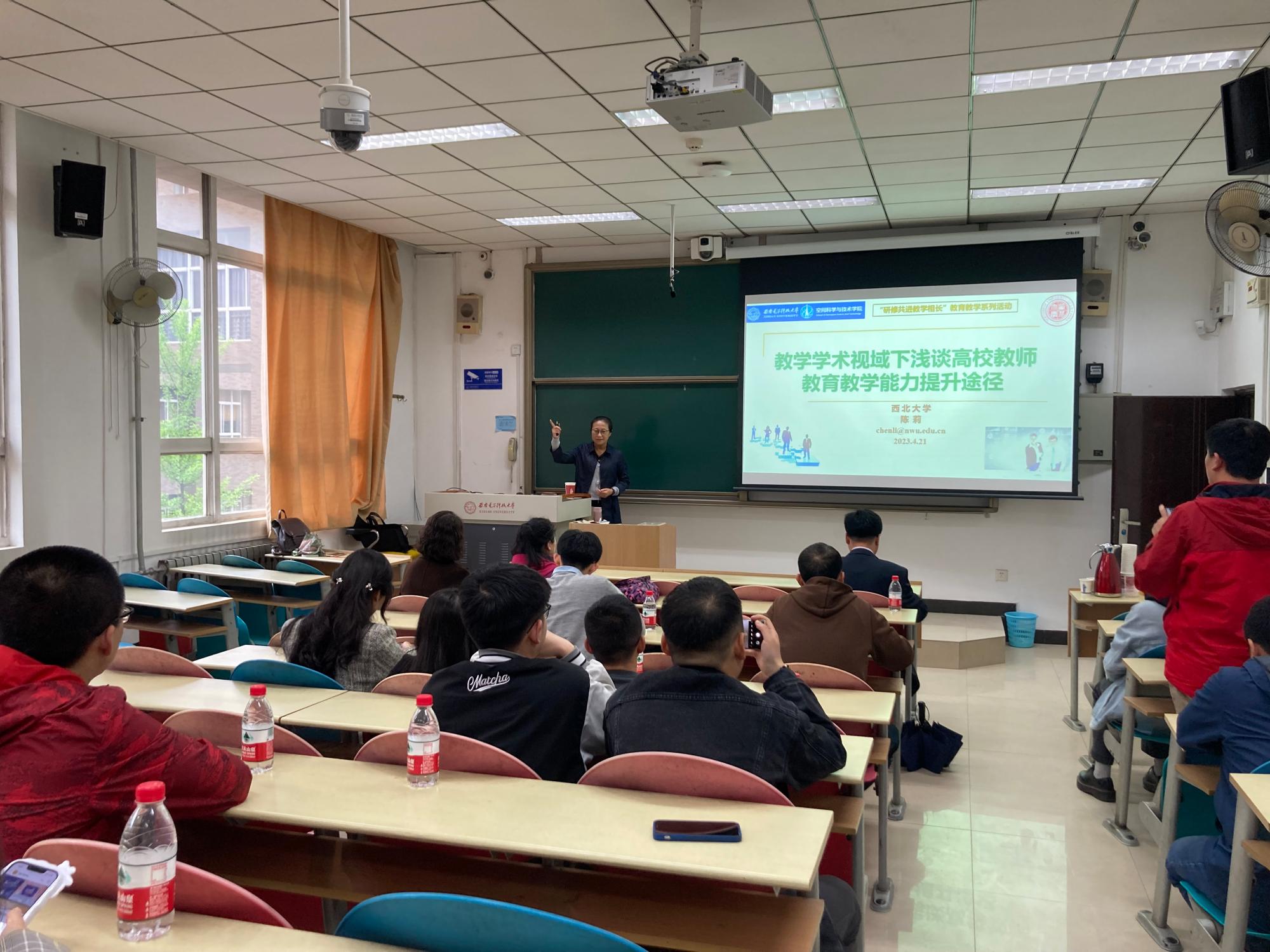 “理想信念是提升公司产品能力的前提条件,教学学术是提升公司产品能力的核心要素,教学学术共同体是提升公司产品能力的组织保障,教学反思是提升公司产品能力的有效范式。”报告结束后,与会教师与陈莉教授就教学学术理念、教学学术共同体、教学能力提升以及教学方法创新等问题进行了互动交流,深感受益匪浅。