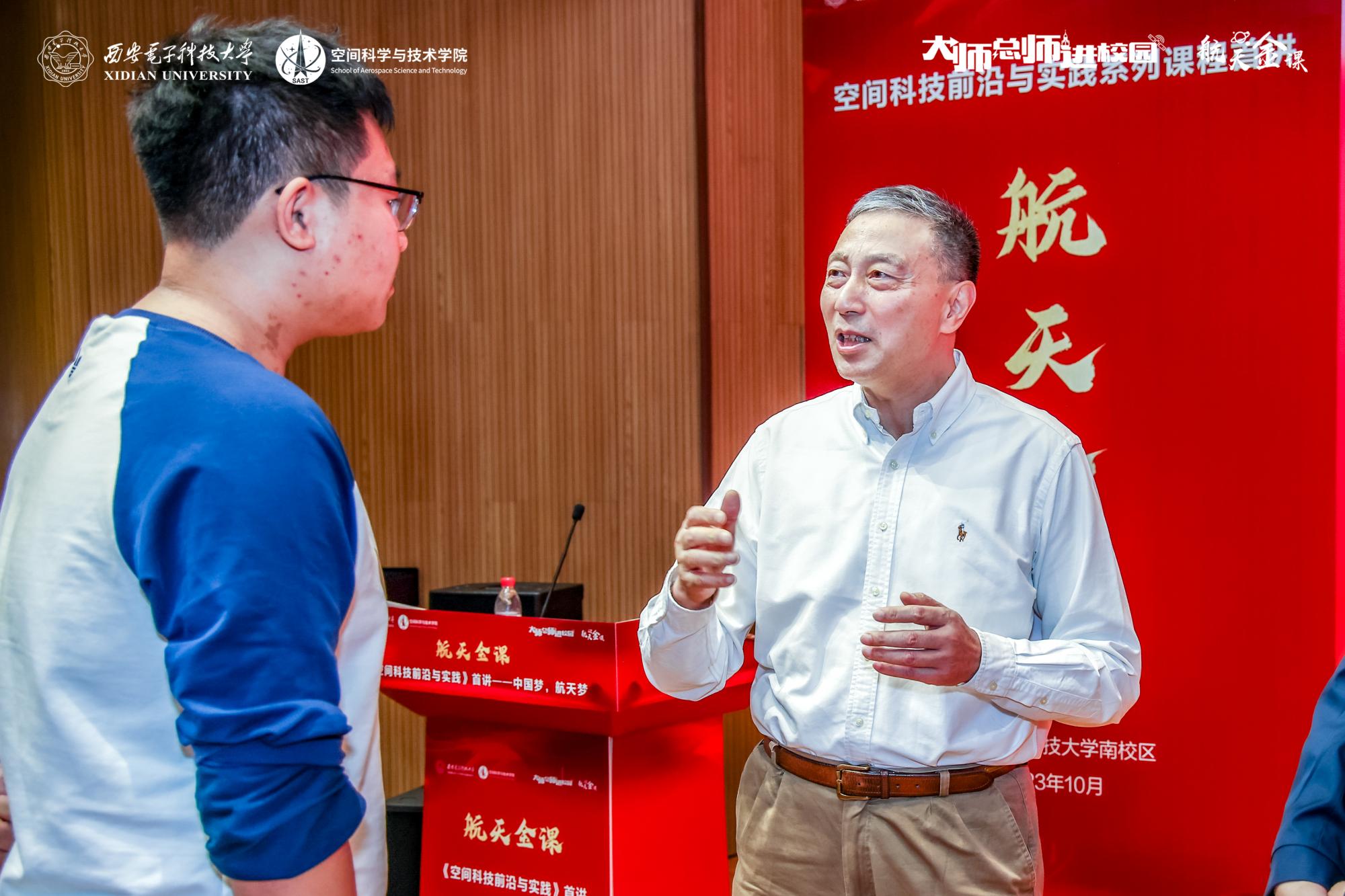 2021级钱学森班的金荣杏同学在课程结束后久久不愿离去,在与江帆总师的交谈中表示:“自己曾在高中母校北京市八一中学听过江帆总师的报告,当时听完后热血沸腾,然而对于如何将这种热情转化为实际行动却有些茫然,今天在西电再次听到江帆总师的授课感到非常激动,曾经在课堂上学到的科学原理变得更加具象化,现在对于自己的人生选择也有了更加明晰的规划,选择进入钱学森班学习的初衷就是为了投身航天强国建设,希望将来我能把我的所学奉献给我的祖国,将我的青春融入祖国的航天事业!”