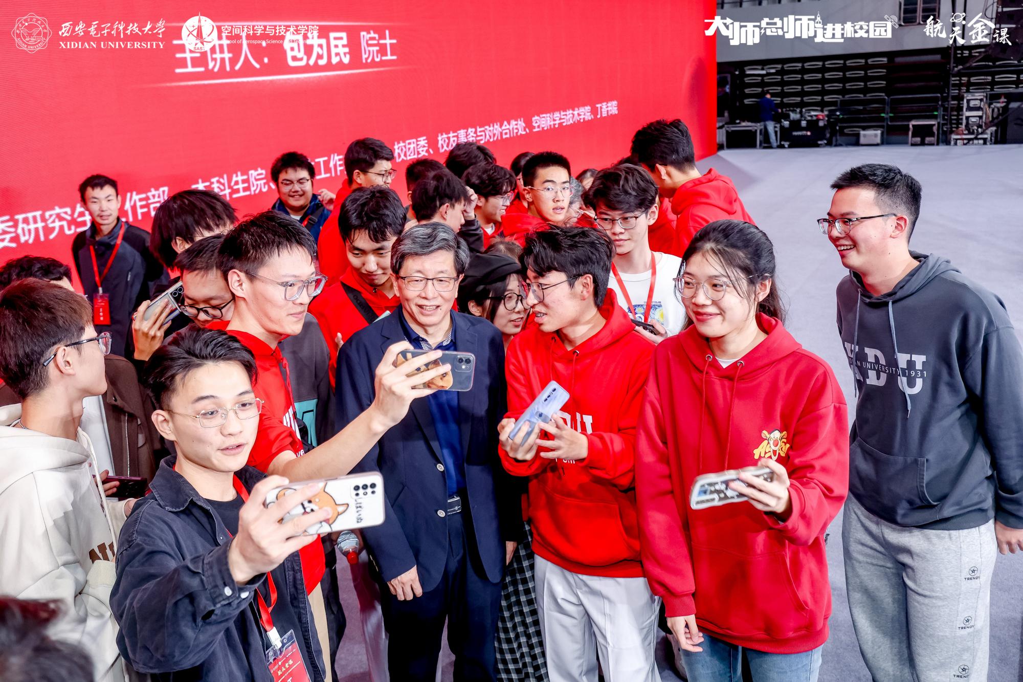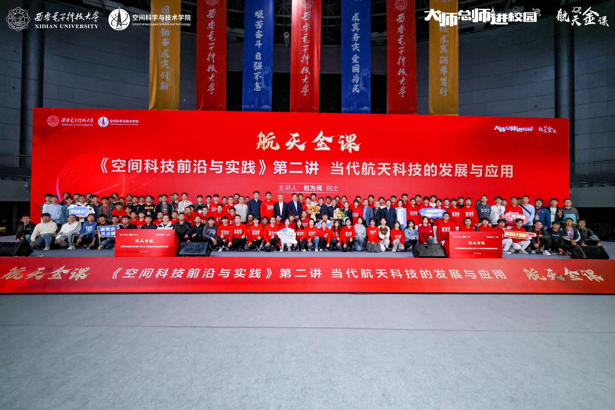 建设航天强国要靠一代代人接续奋斗,需要更多青年热爱航天、投身航天,加入航天事业队伍。当同学们集体起立并齐声喊出“中国航天 西电有为”时,既是对西电航天总师的崇高敬意,也是青年学子接续奋斗、传承使命的庄严承诺。