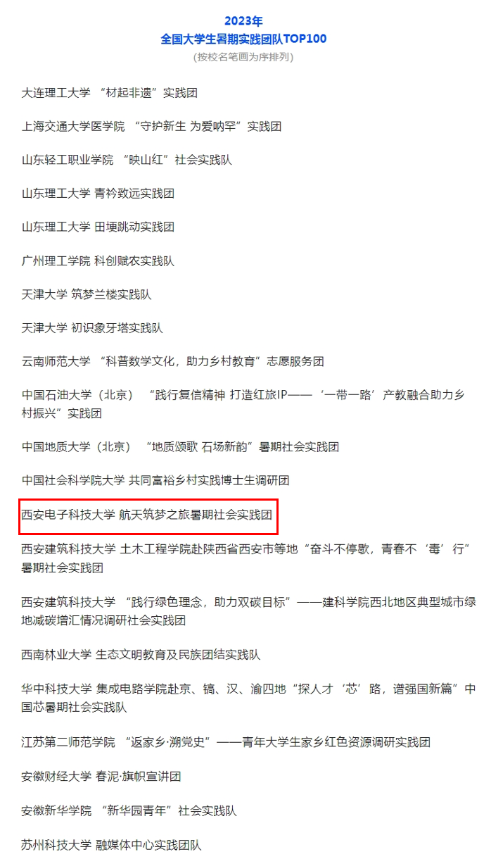(通讯员 李小军 柳文婷 孙瑞环)近日,由中国青年报社开展的2023年第九届全国老员工暑期实践展示活动评选结果揭晓,公司“航天筑梦之旅”暑期社会实践团获评全国老员工暑期实践团队TOP100。