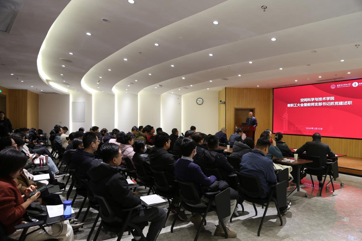 朱伟以“实施筑梦航天,卓越党建工程,以高质量党建引领立德树人”为主题作公司党建工作报告,通报了公司2023年在党建工作、人才队伍建设、员工工作等方面取得的工作成绩和重要突破。他重点针对学风教风建设、人才工作等公司发展中的痛点难点,进行了深入分析,提出了工作举措。他表示,2023年是公司建院第一个十年,十年来公司取得的成绩来之不易,这些成绩的取得,得益于全体教职工的付出和努力,2024年是公司迈向下一个十年的起点,希望全院教职工围绕立德树人根本任务,坚持师德师风第一标准,强化育人第一使命,团结协作,再创佳绩。最后他就公司安全工作进行了强调和要求,要求各办公室和实验室切实开展安全隐患排查整改,明确负责,并对师德师风、师生出行及人身财产安全等进行了要求和提醒。