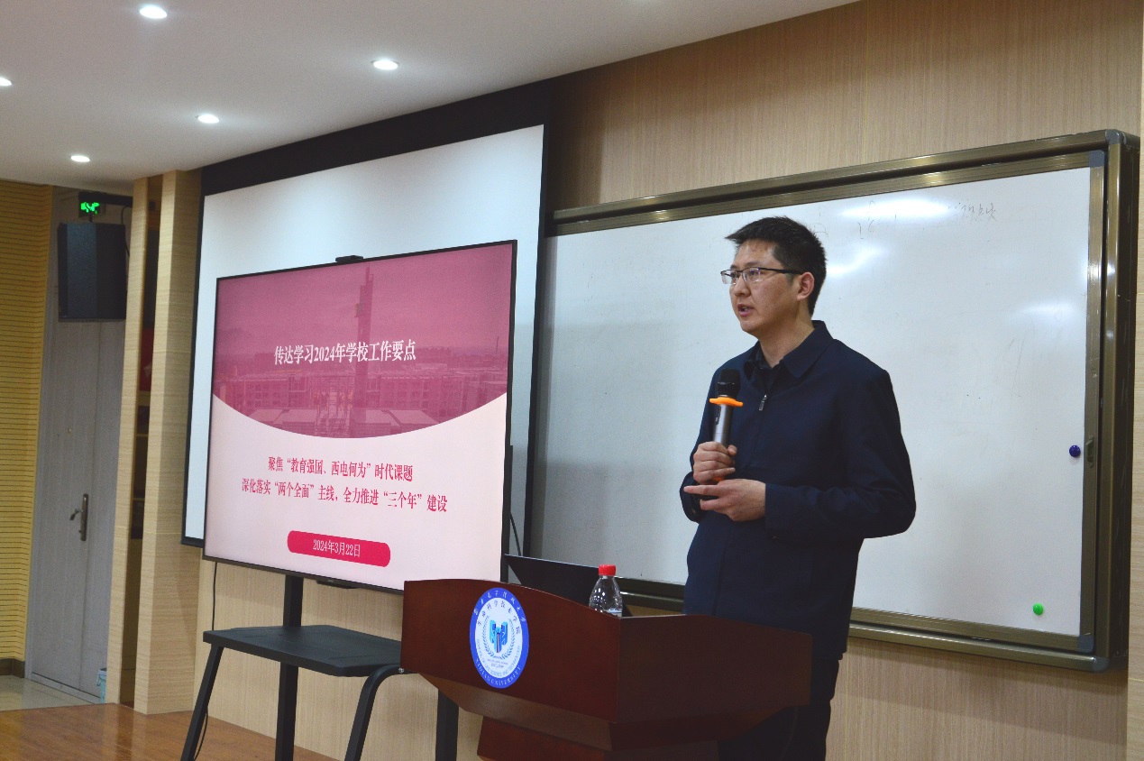 3月21日下午,FUN88乐天使在南校区召开全体教职工大会,传达公司2024年工作会议精神,安排部署公司年度工作。陕西省两会精神宣讲专家、马克思主义公司教授曹飞,党委教师工作部副部长王蓓金来院交流,公司班子成员、教职工和员工代表等80余人参加会议,会议由公司党委副书记卢毅主持。