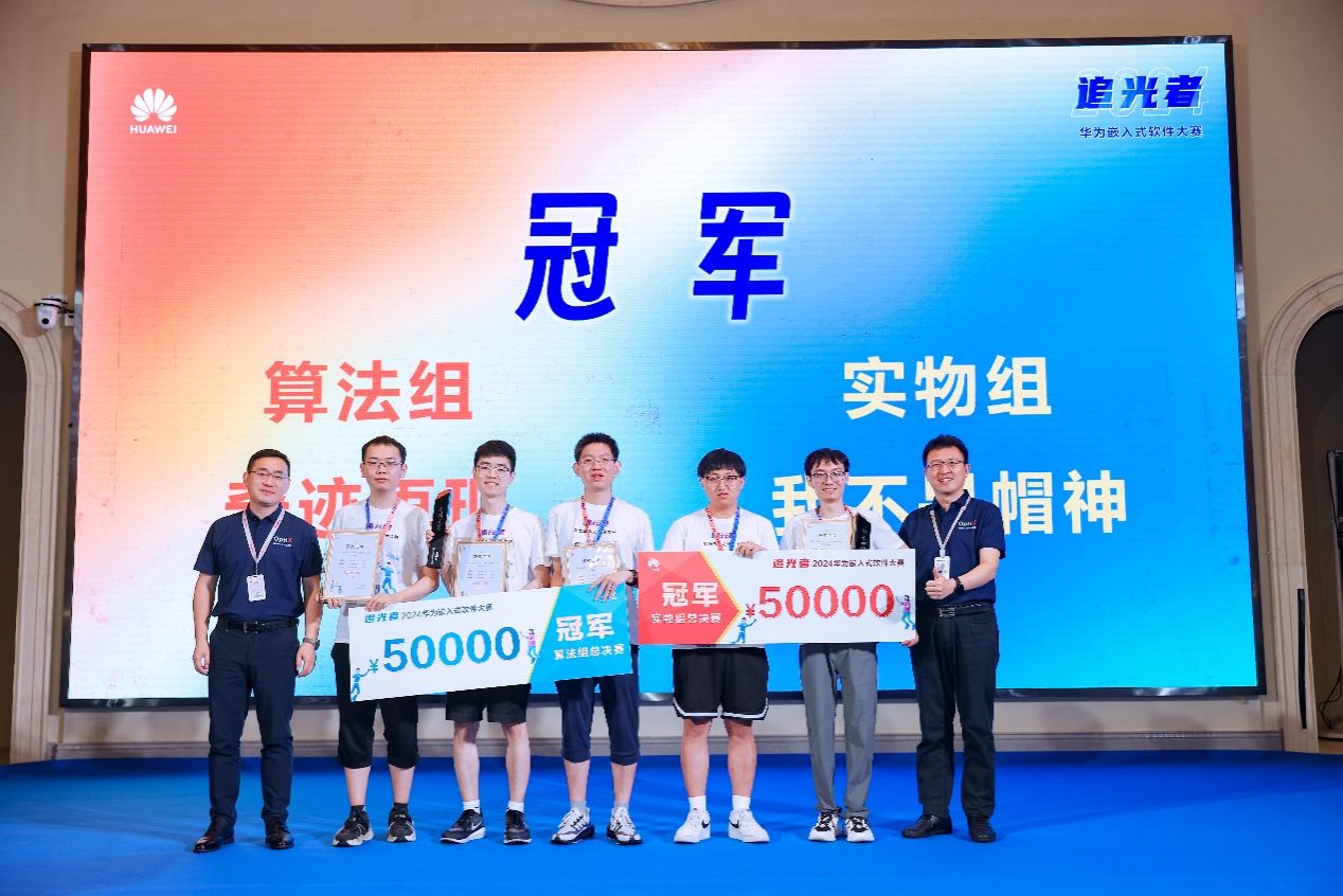 据悉,华为嵌入式软件大赛是华为公司面向全球高校有志于在嵌入式软件领域发展的在校员工举办的大赛,旨在激励员工学习嵌入式的兴趣,培养他们分析问题、解决问题的能力。2024年华为嵌入式软件挑战赛分为实物组和算法组,在经历各个赛区初赛筛选后,每个赛区算法组和实物组共24支队伍进入了初赛现场决赛,在全国每个赛区两个赛道决出冠亚季军共6队优胜队伍后,六大赛区分别派出这6支晋级队伍,共36支队伍进入了全国总决赛。36支队伍经过激烈比拼,在实物组和算法组两条赛道共产生了2支冠军队伍、2支亚军队伍、4支季军队伍和2支新光奖队伍。