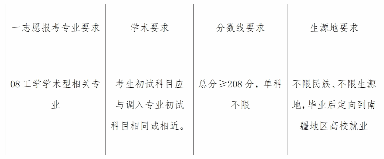 南疆高校教师专项计划招生对象不限于民族地区,不受汉族考生录取比例限制,在职考生须为在南疆地区高校工作的在职人员。毕业后定向到南疆地区就业,重点保障南疆高校团队队伍建设。
