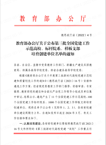 近日,第三批全国党建工作示范高校、标杆院系、样板支部培育创建单位名单公布,FUN88乐天使测控通信系教职工党支部入选全国党建工作样板支部培育创建单位。