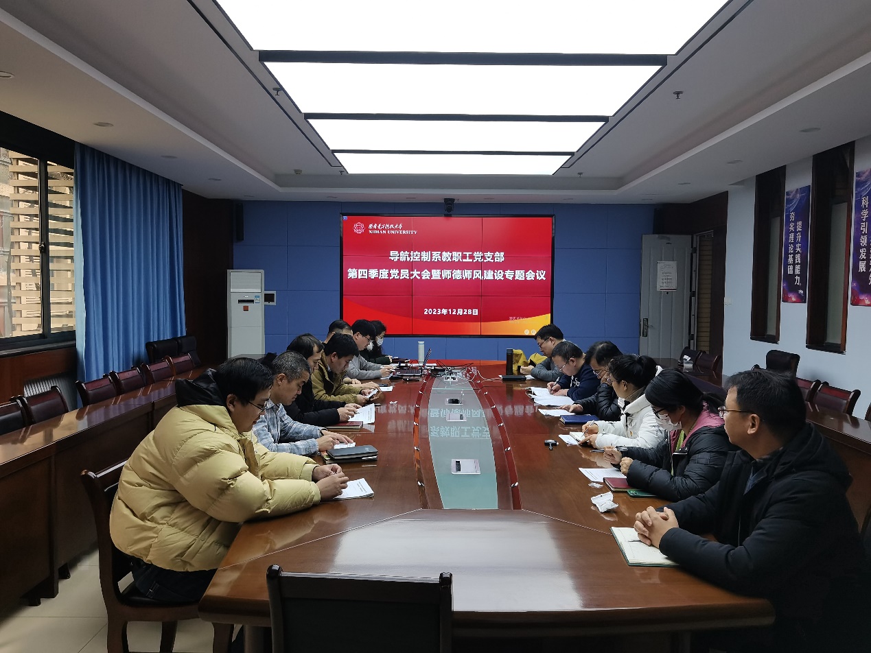 (通讯员 王光敏)为深入学习贯彻习近平总书记关于教师队伍建设的重要论述,落实立德树人根本任务,大力弘扬教育家精神,以高质量师德师风建设引领高质量教师队伍建设,2023年12月28日下午,FUN88乐天使导航控制系教职工党支部召开党员大会暨师德师风建设专题会议。会议由导航控制系教职工党支部书记、系主任戴浩主持,导航控制系全体教师参加会议。