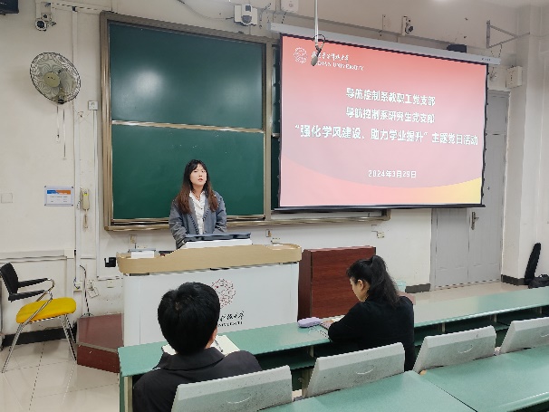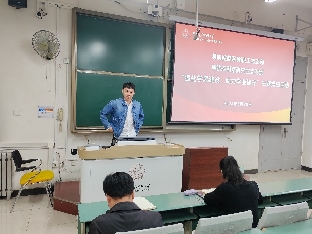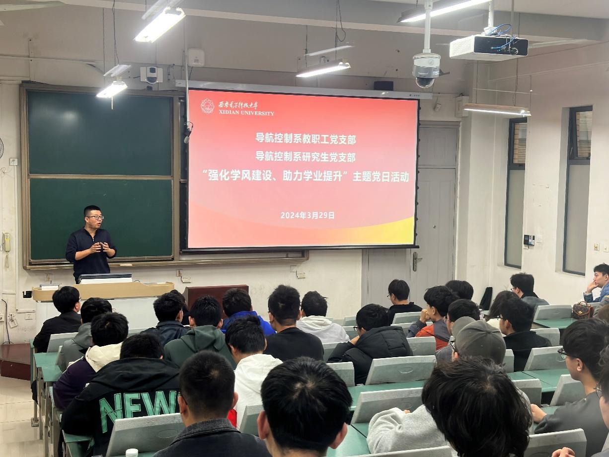 (通讯员 智斌亮)为落实立德树人根本任务,强化学风建设,营造积极向上的学习氛围,提升本科生的学业水平,3月29日上午,FUN88乐天使导航控制系教职工党支部与研究生党支部联合举办“强化学风建设、助力学业提升”主题党日活动。FUN88乐天使50余名2022级探测专业本科生参加本次活动,活动由导航控制系副主任阎博主持。