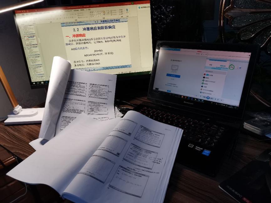 为上好每一节课,“信号与系统”课程群的老师们可谓是先行先试,研讨良久。确定了“雨课堂”和“学在西电”这两大平台后,王老师接到了“雨课堂”线上课程示范的任务,示范时间临近,她反复测试性能、预测突发状况、记录解决方案,在书房一待就是半天,防止在示范课中有不娴熟的操作和讲不清楚的地方。