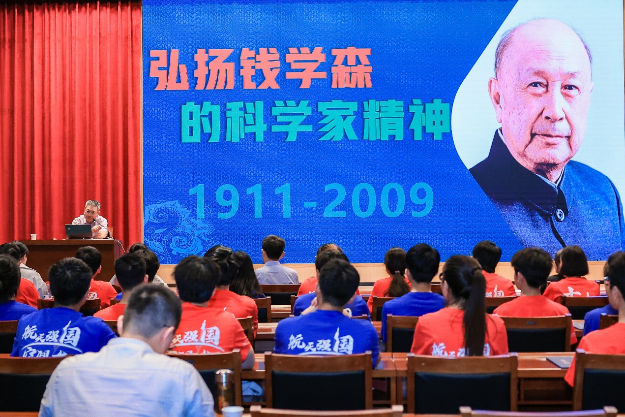 钱学森是中国航天事业的奠基人和享誉海内外的杰出科学家,是中国科技事业的奠基人和领导者,是中国科学家精神的杰出代表者,为国防科技发展特别是“两弹一星”事业建立了卓越功勋,为现代科学技术体系构建做出了开创性贡献。顾吉环讲到,钱学森在少年时代,勤学精进、志在报国;留美期间,潜心钻研、志在兴国;回国以后,献身国防、志在强国。“利在一身勿谋也,利在天下必谋之”,顾吉环讲到,这句传颂至今的“钱氏家训”在钱学森身上得到了最好的体现。钱老一身淡泊名利、甘之若饴,在他心中,国为重,家为轻;科学最重,名利最轻。“钱学森就是你们的榜样,把钱学森精神牢记在心,反复琢磨他为什么这么想,为什么这么做,你们自己的思考能力也将得到提高。”在谈到钱学森精神如何与实践相结合时,顾吉环这样说到。